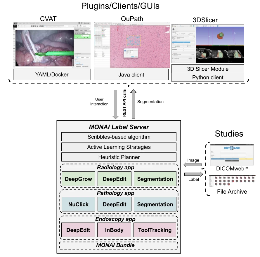 MONAI is an open source platform designed to address the challenges of integrating deep learning into healthcare solutions. Inside the MONAI ecosystem lives MONAI Label, which focuses on the task of scalable and efficient medical image labeling. For more information on MONAI workflows, we invite the reader to check this post.